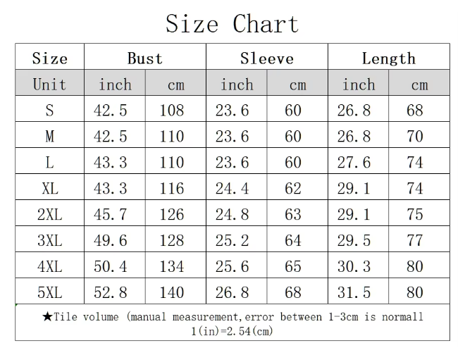 Size: S, M, L, XL, 2XL, 3XL-5XL (available)