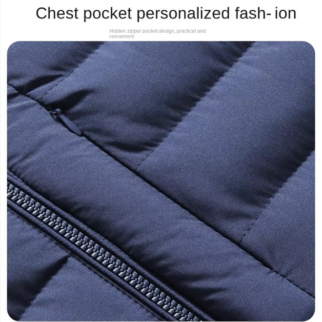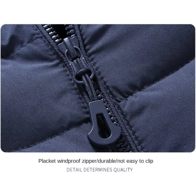 Feature: Windproof and cold-proof. One-piece two-piece detachable hat. Oblique pockets are safe and convenient. Chest pocket personalized fashion.