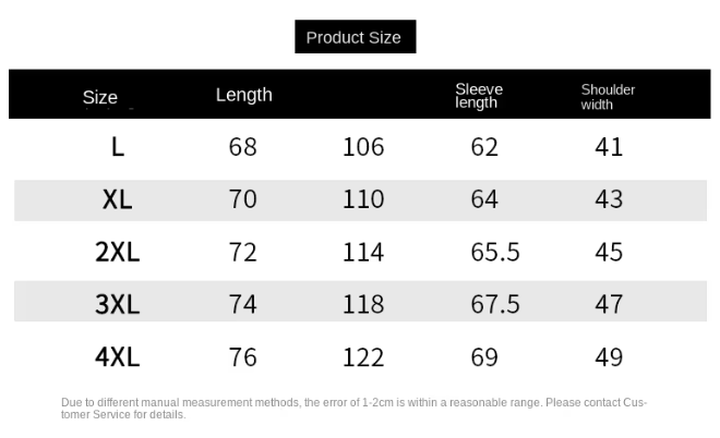 Size: L, XL, 2XL, 3XL, 4XL