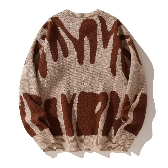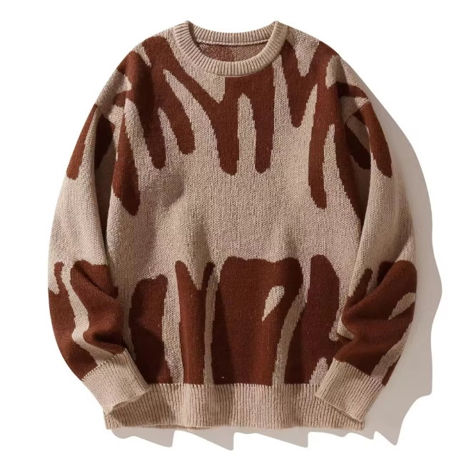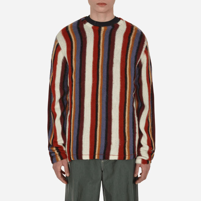 Men Loose Knit Pullover Vintage Multicolor Stripe Fringe Hem Wool Sweater