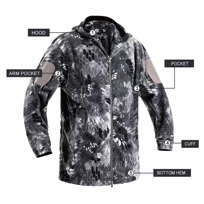 Versatile Black Python Camo Hooded Fleece Jacket For Tactical and Outdoor Wear